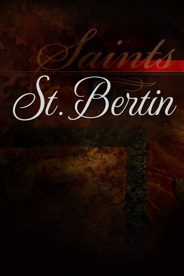 Abbot of St. Omer, b. near Constance about 615; d. about 709. At an early age he entered the monastery of Luxeuil in France where, under the austere Rule of St. Columban, he prepared himself for his future missionary career. About the year 638 he set out, in company with two confrères, Mummolin and Ebertram, for the extreme northern part of France in order to assist his friend and kinsman, Bishop St. Omer, in the evangelization of the Morini. This country, now in the Department Pas-de-Calais, was then one vast marsh, studded here and there with hillocks and overgrown with seaweed and bulrushes. On one of these hillocks,Bertin and his companions built a small house whence they went out daily to preach the word of God among the natives, most of whom were still heathens. Gradually some converted heathens joined the little band of missionaries and a larger monastery had to be built. A tract of land called Sithiu had been donated to Omer by a converted nobleman named Adrowald. Omer now turned this whole tract over to the missionaries, who selected a suitable place on it for their new monastery. But the community grew so rapidly that in a short time this monastery also became too small and another was built where the city of St. Omer now stands. Shortly after Bertin's death it received the name of St. Bertin. Mummolin, perhaps because he was the oldest of the missionaries, was abbot of the two monasteries until he succeeded the deceased St. Eligius as Bishop of Noyon, about the year 659. Bertin then became abbot. The fame of Bertin's learning and sanctity was so great that in a short time more than 150 monks lived under his rule, among them St. Winnoc and his three companions who had come from Brittany to join Bertin's community and assist in the conversion of the heathen. When nearly the whole neighbourhood was Christianized, and the marshy land transformed into a fertile plain, Bertin, knowing that his death was not far off, appointed Rigobert, a pious monk, as his successor, while he himself spent the remainder of his life preparing for a happy death. Bertin began to be venerated as a saint soon after his death. His feast is celebrated on 5 September. In medieval times the Abbey of St. Bertin was famous as a centre of sanctity and learning. The "Annales Bertiniani" (830-882; Mon. Germ. Hist.: Script., I, 419-515) are important for the contemporary history of the West Frankish Kingdom. The abbey church, now in ruins, was one of the finest fourteenth-century Gothic edifices. In later times its library, archives, and art-treasures were renowned both in and out of France. The monks were expelled in 1791 and in 1799 the abbey and its church were sold at auction. The valuable charters of the abbey are published in Guérard, "Cartulaire de l'abbaye de St. Bertin" (Paris, 1841; appendix by Morand, ibid., 1861). The list of abbots is given in "Gallia Christiana nova", III, 485 sqq. See Laplane, "Abbés de St. Bertin" (St. Omer, 1854-55).