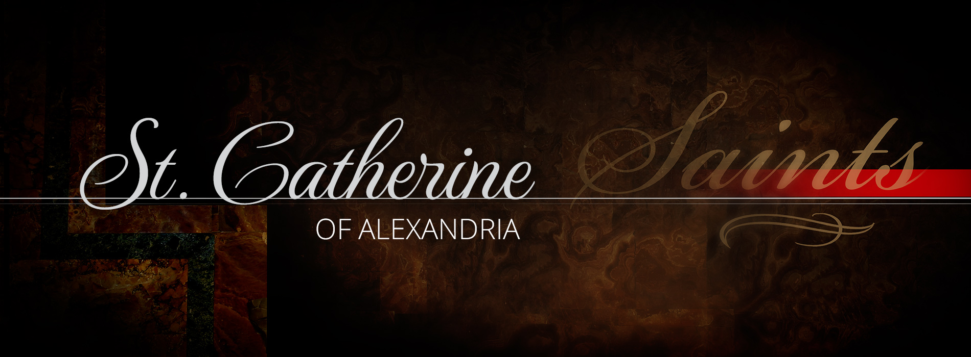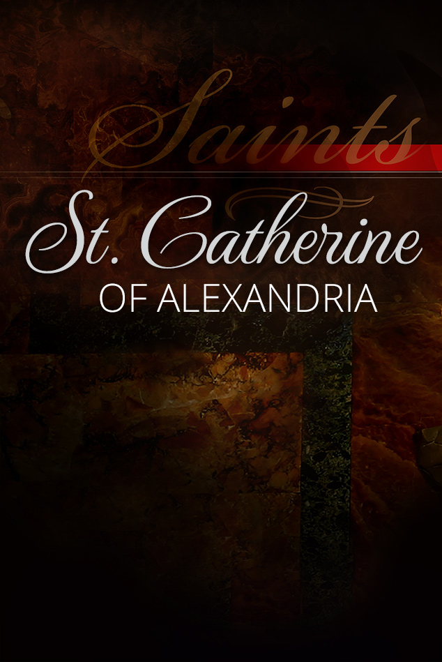 According to the popular tradition, Catherine was born of a patrician family of Alexandria and from childhood had devoted herself to study. Through her reading she had learned much of Christianity and had been converted by a vision of Our Lady and the Holy Child. When Maxentius began his persecution, Catherine, then a beautiful young girl, went to him and rebuked him boldly for his cruelty. He could not answer her arguments against his pagan gods, and summoned fifty philosophers to confute her. They all confessed themselves won over by her reasoning, and were thereupon burned to death by the enraged Emperor. He then tried to seduce Catherine with an offer of a consort's crown, and when she indignantly refused him, he had her beaten and imprisoned. The Emperor went off to inspect his military forces, and when he got back he discovered that his wife Faustina and a high official, one Porphyrius, had been visiting Catherine and had been converted, along with the soldiers of the guard. They too were put to death, and Catherine was sentenced to be killed on a spiked wheel.
