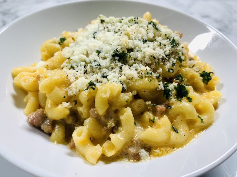 Macaroni and Cheese, cooked in a white wine cheese sauce with a bratwurst crumble, combines the popular flavors inspired by the people, faith and culture of Wisconsin.